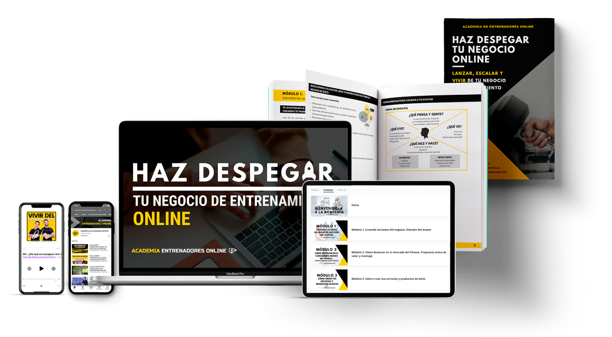 Dentro de la Academia de Entrenadores Online te enseñaremos todo lo que necesitas para conseguir tus primeros clientes, ofrecerles un servicio de entrenamiento online de calidad, posicionarte como un profesional de referencia y poder vivir de ello.